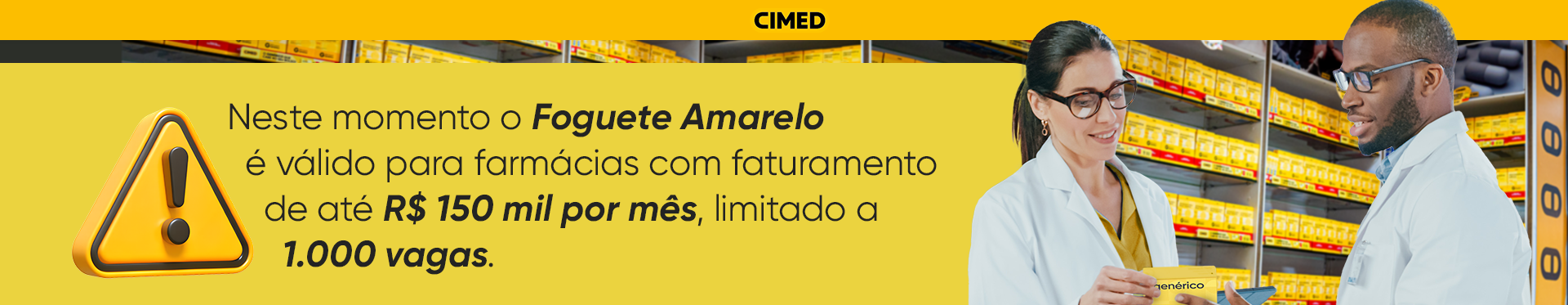 O Foguete Amarelo é um programa para um grupo selecionado de farmácias que receberão um estoque inicial de produtos com alta demanda na sua região e você somente irá pagar o produto quando este for vendido.*
